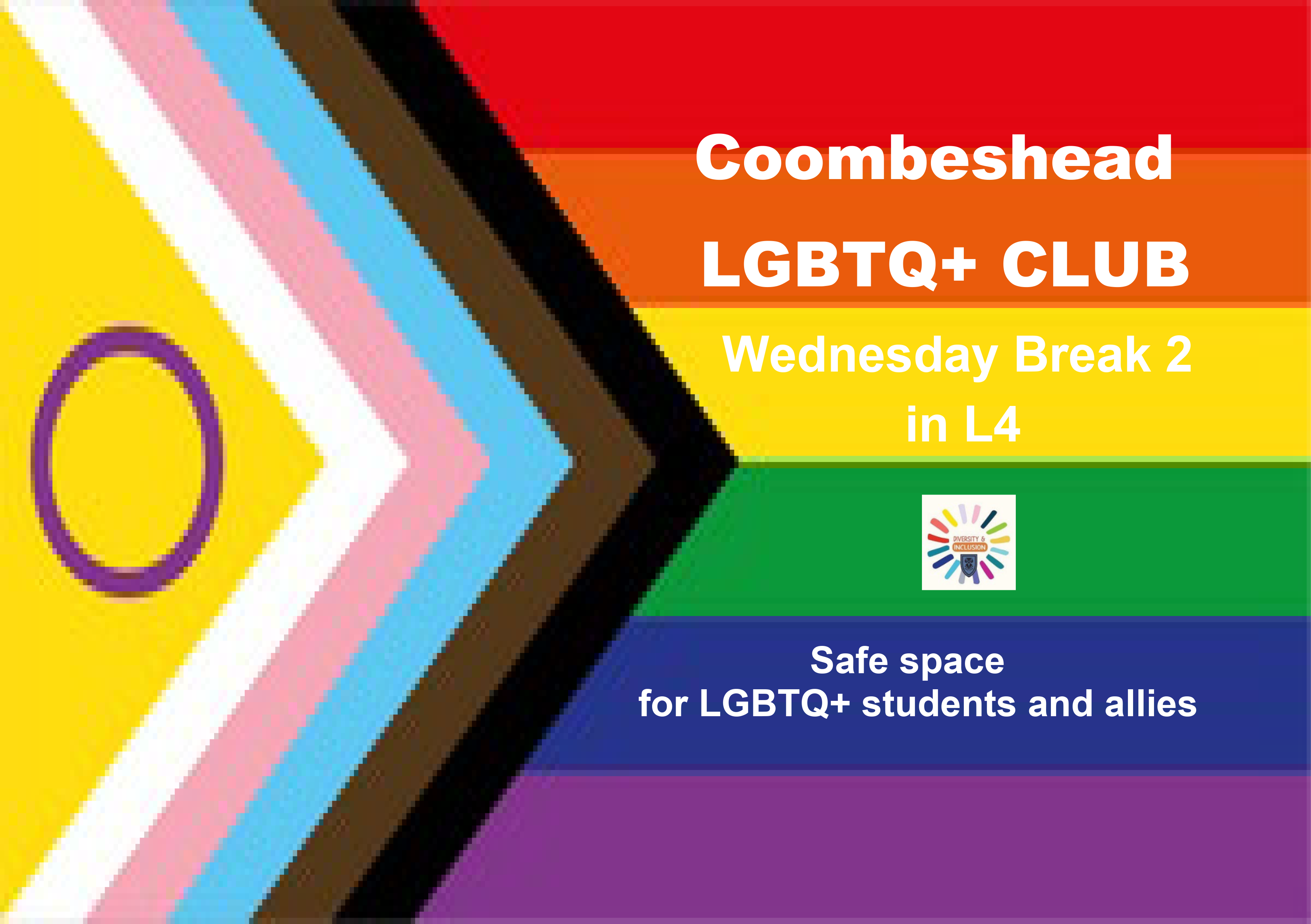 The LGBTQ+ Club is a safe place for LGBTQ+ students and allies in school. It runs every Wednesday at Break 2 in L4. Hollie Wright, who is the Devon schools support worker for Intercom Trust, will also assist every other week.