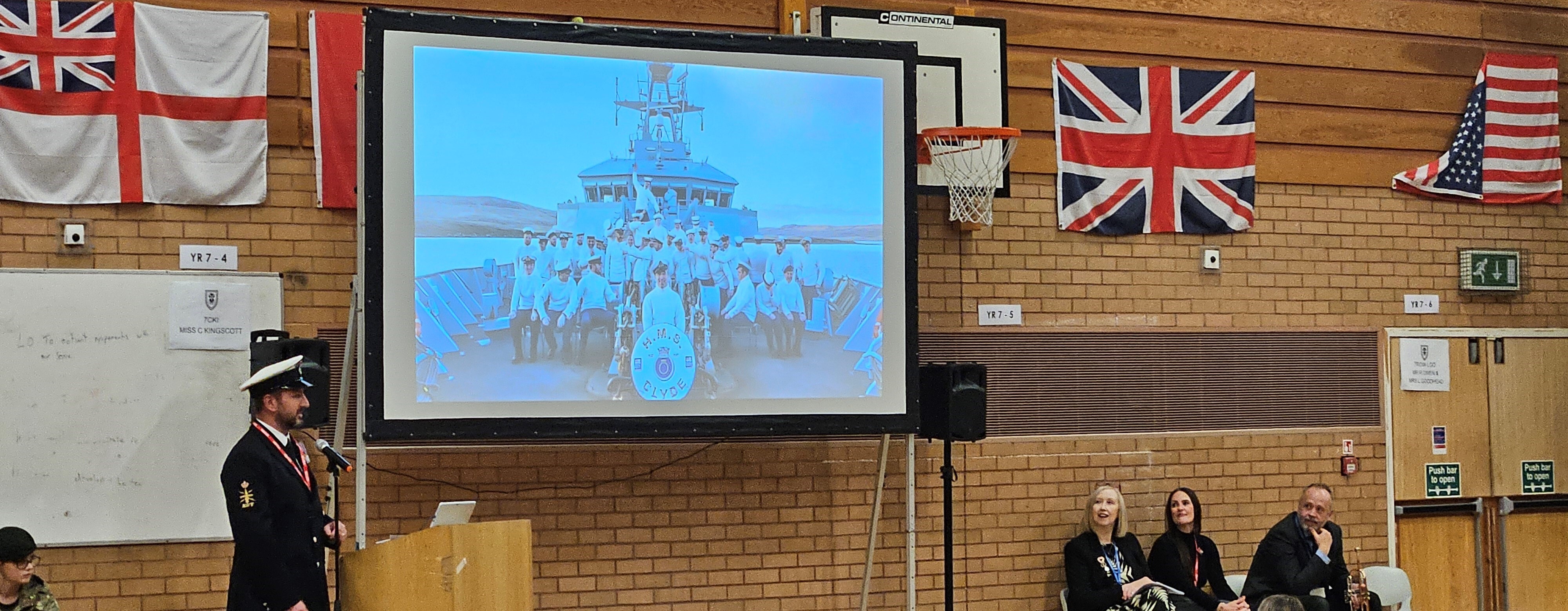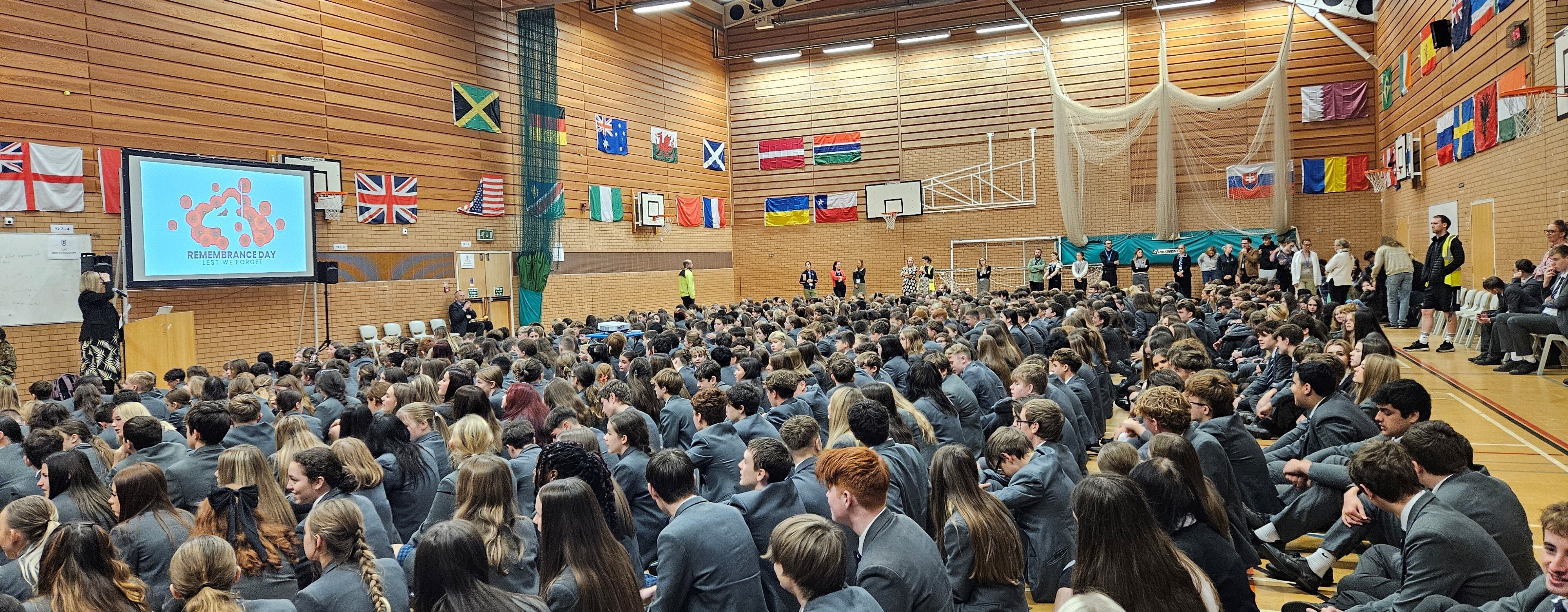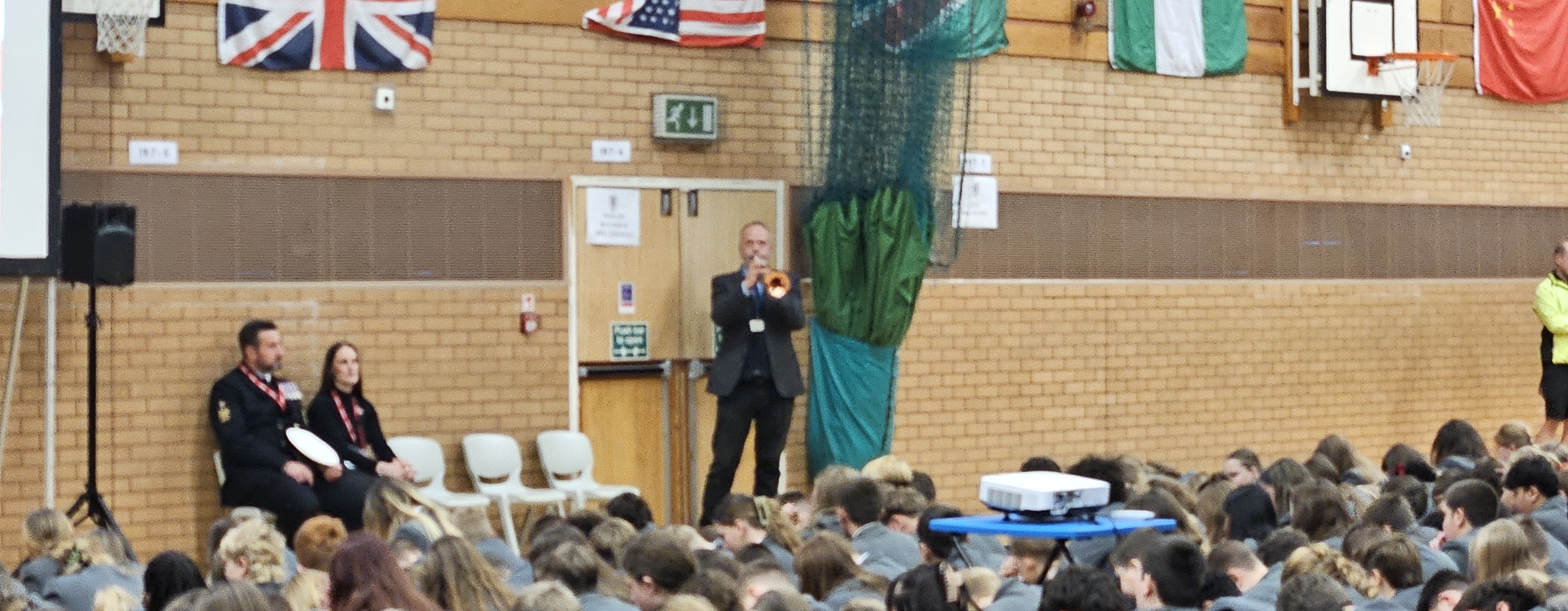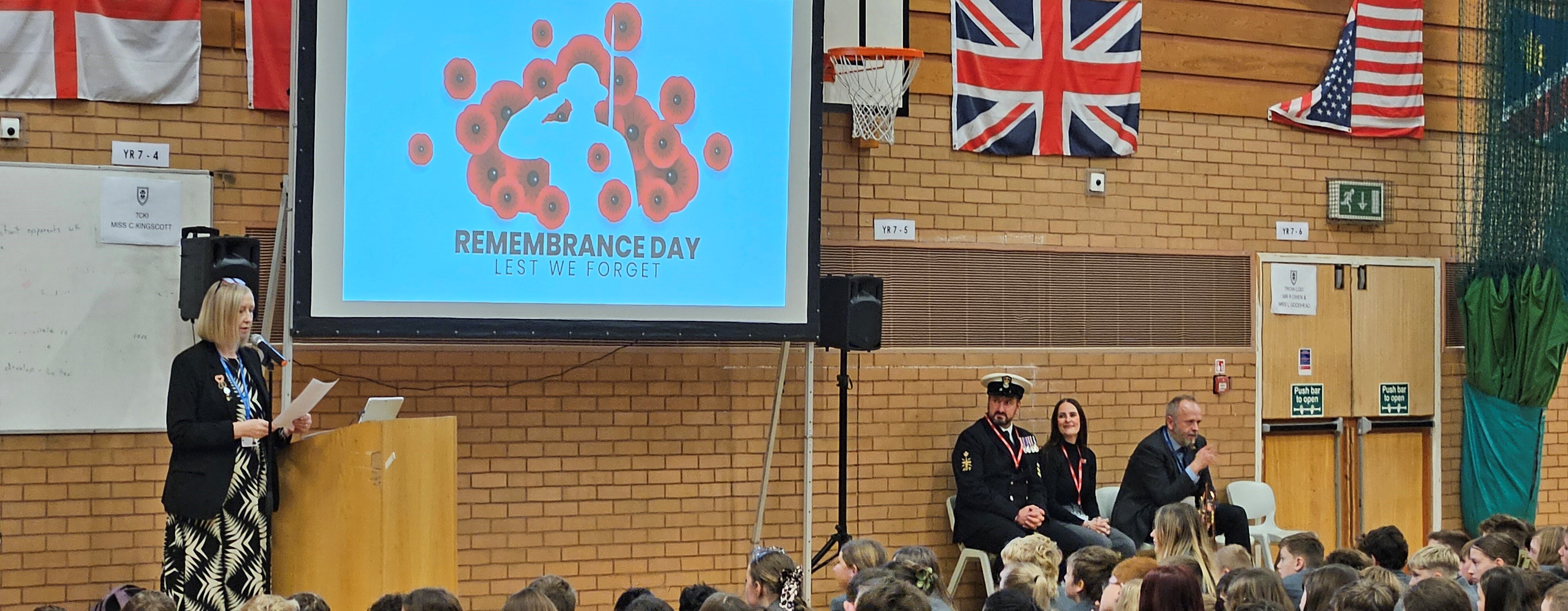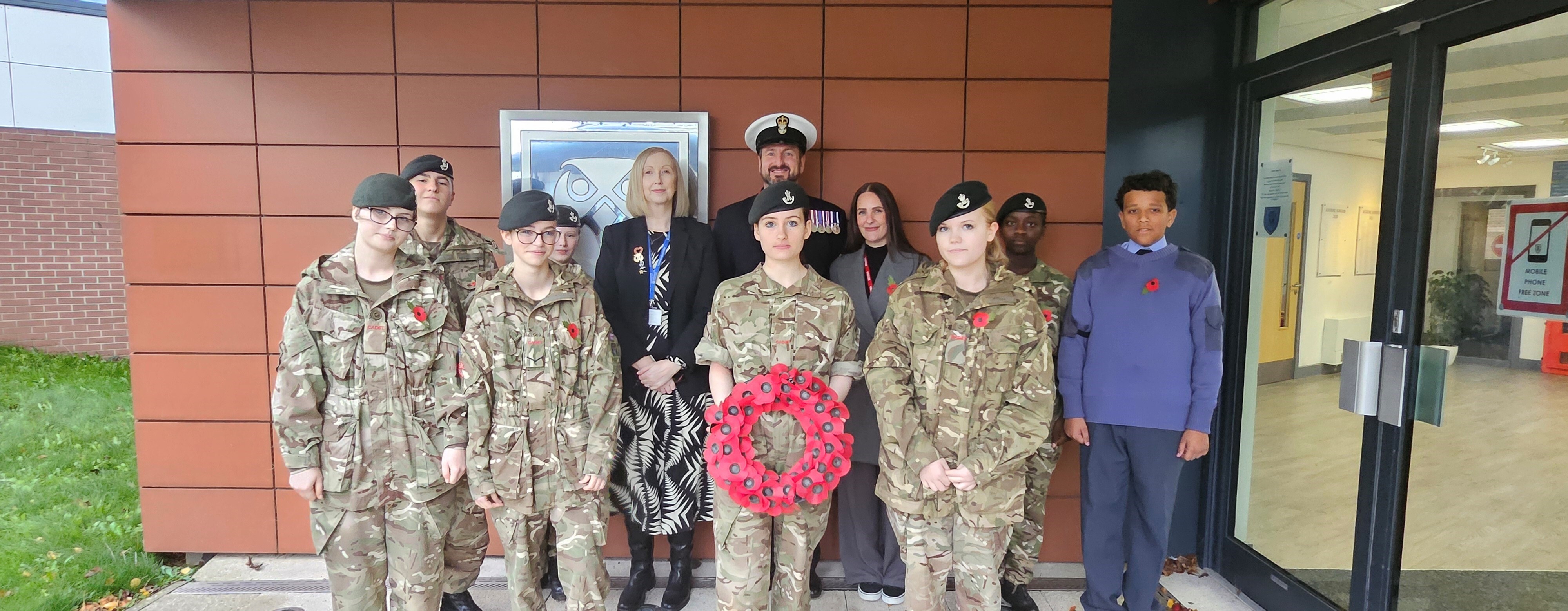 On Tuesday 11 November, all Coombeshead Academy staff and students gathered for our annual service of remembrance. The service was led by Mrs Coulson who spoke of the sacrifice made by others during times of military conflict. Our guests were Petty Officer and Mrs Brian Williamson. Brian is a former Coombeshead student who is coming up to having served 24 years in the Royal Navy. He spoke about the opportunities and experiences he has enjoyed during his service as well the significance and importance of Remembrance Day for serving personnel and veterans. The whole school fell silent for 2 minutes. We were accompanied on the trumpet by Curriculum Team Leader for Performing Arts, Andy Tyner. The students were an absolute credit throughout. A big thank you to all of you who bought and wore poppies and another thank you to our cadets who came in uniform today.