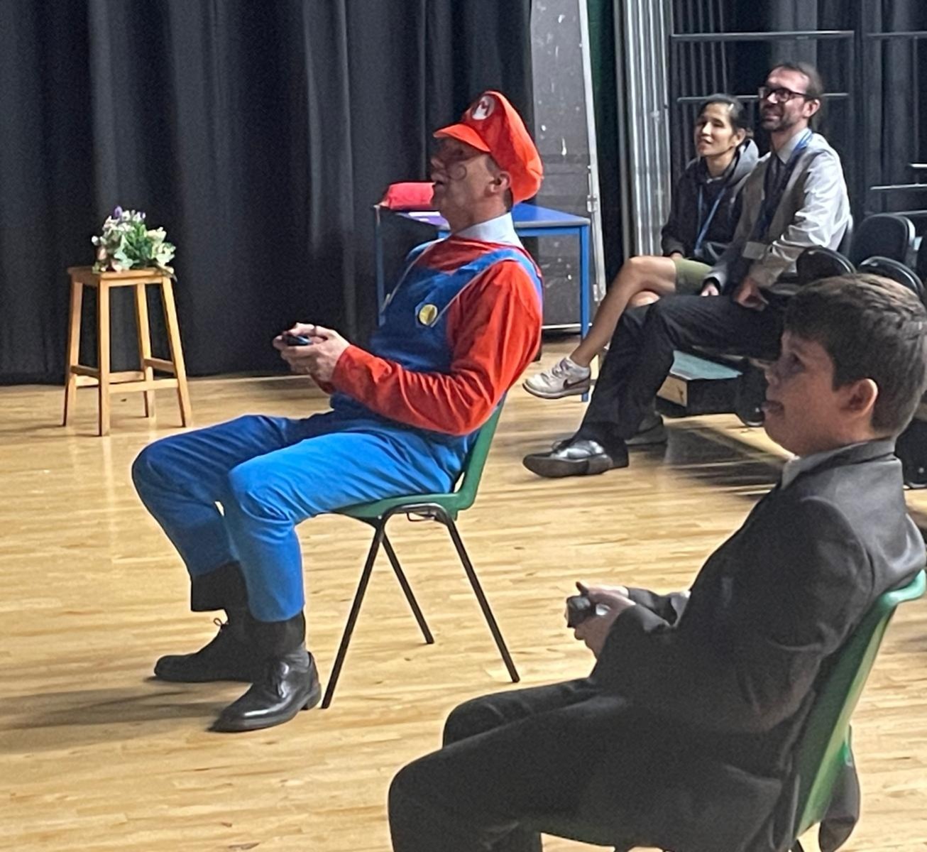 There were several events happening today to help raise funds for Children in Need. The highlight of which was a Mario Kart Grand Prix race between Mr Graham and Peter in Year 8. With a packed theatre, the crowd got fully behind their fellow student and loud chants of 'Peter, Peter' must have put Mr Graham off as he lost all 4 races, despite having dressed up as Mario! This event alone raised over £100 for Children in Need and our thanks go to all the students who supported this event.