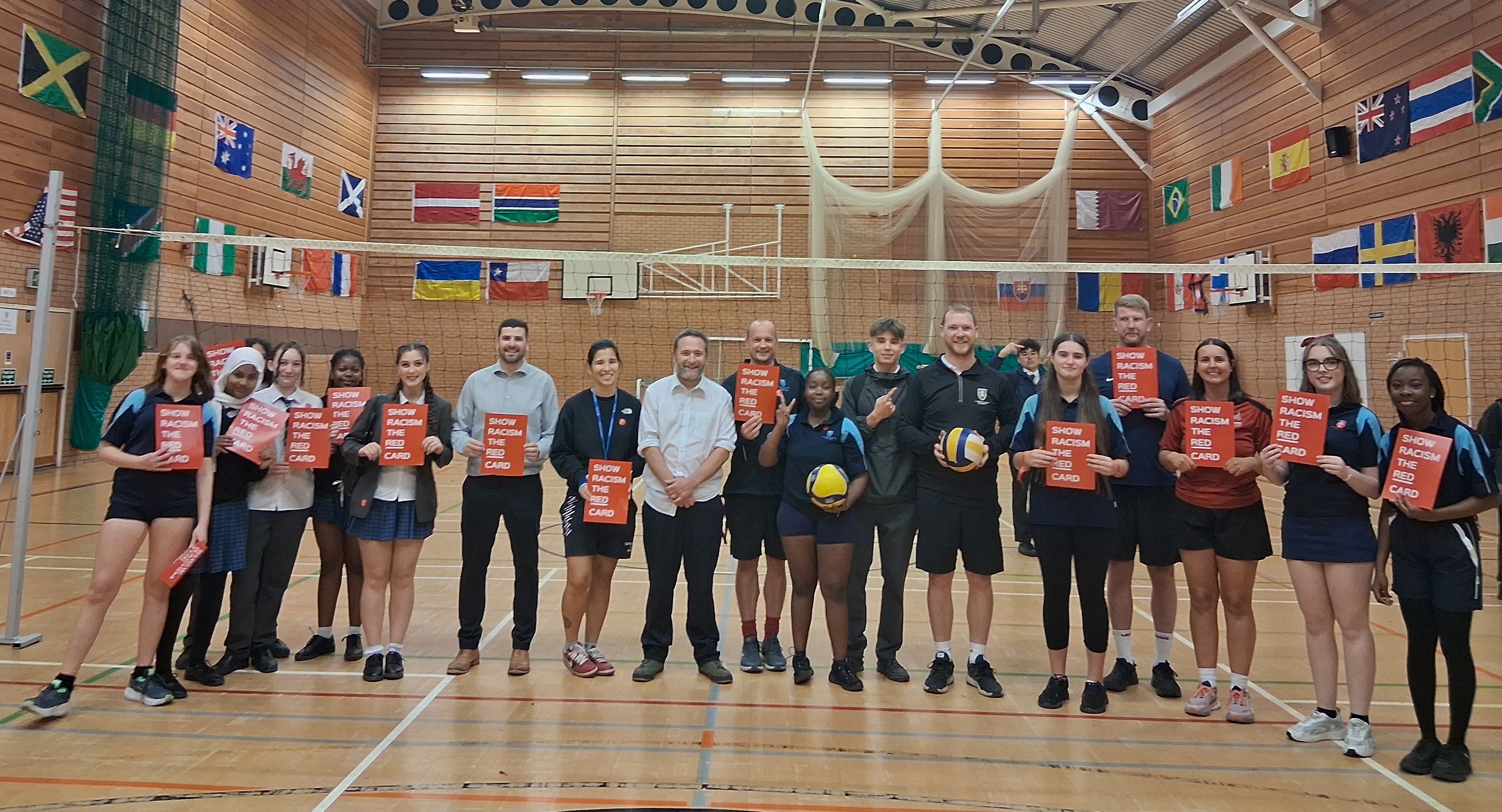 Thank you to all students and staff who wore something red today in support of the charity 'Show racism the red card'. Education is key to raise awareness and champion equality, respect and kindness The fundraising cake sale and staff vs students volleyball game also proved very popular at break times, well done to everyone involved!